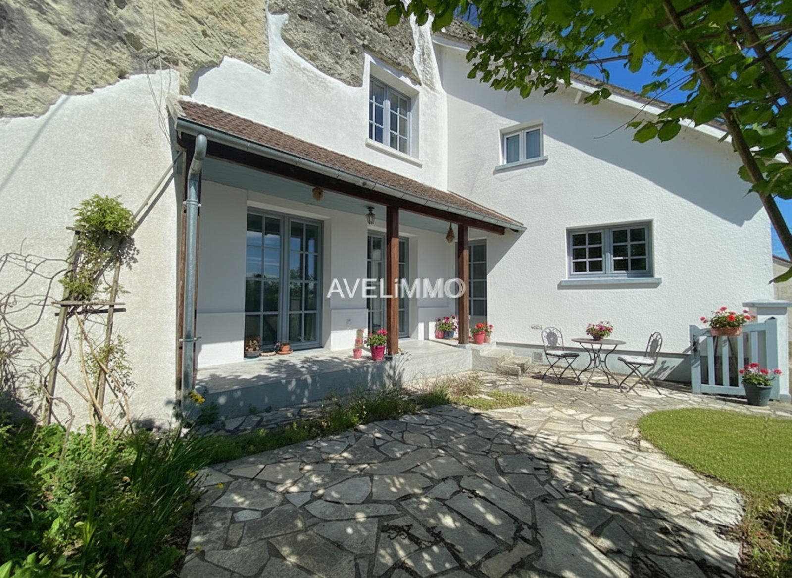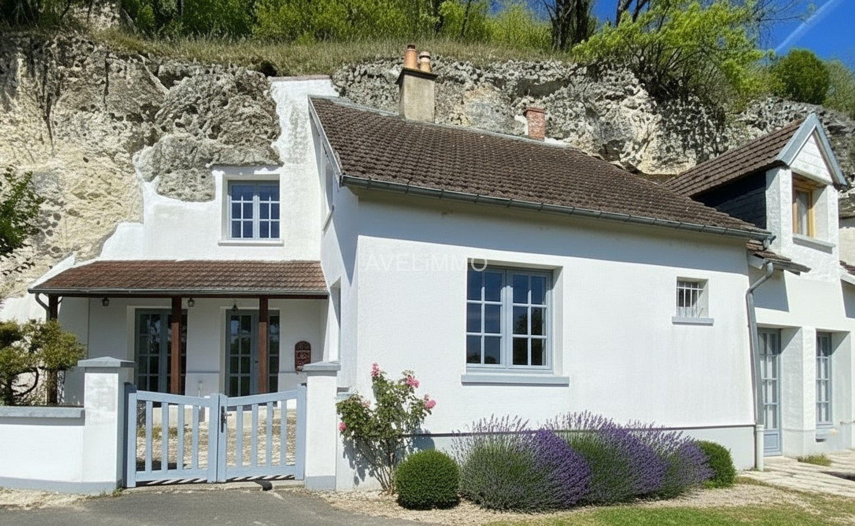 Située sur la commune de Bourré, charmante maison semi-troglodyte avec vue sur le Cher, offrant :