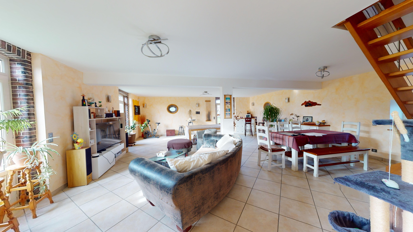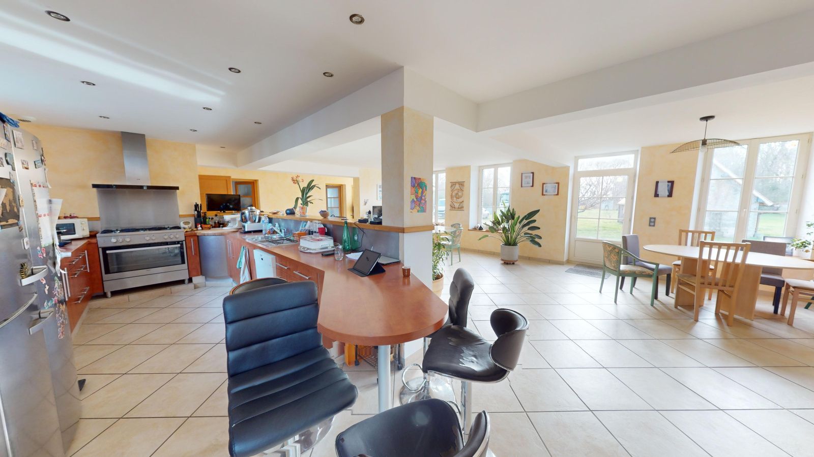 Celle-ci se compose, une entrée desservant une cuisine ouverte sur la salle à manger de 61 m², un beau séjour double lumineux de 68 m², de plus une chambre, une salle de bains, un wc indépendant ainsi qu'une grande buanderie.