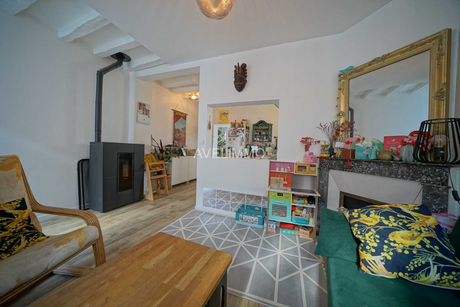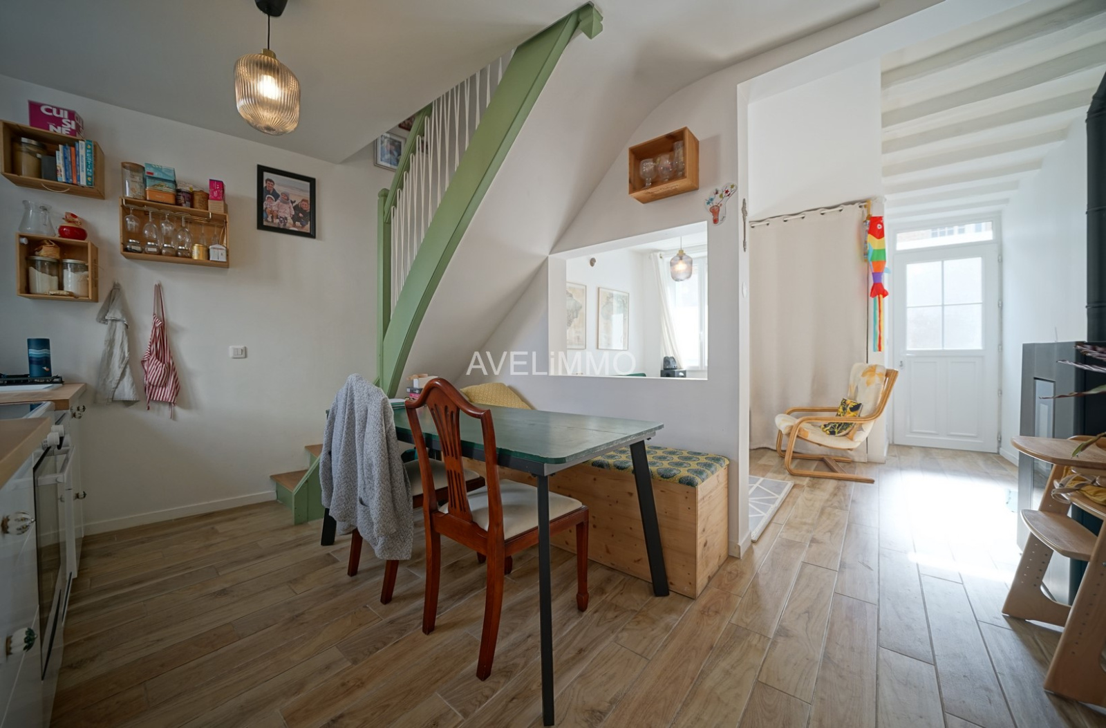 Maison ancienne rénovée d’environ 73 m² habitables sur un terrain de 90 m² : Au rez-de-chaussée (30 m² env) : Entrée sur un séjour avec poêle à granulés, une cuisine ouverte aménagée et un wc. A l’étage (26 m² env) : Un palier distribuant une chambre de 13.70 m², une chambre enfant de 8 m² et une salle de bains avec wc. Grenier sur le tout. Dépendance : un atelier avec coin buanderie de 14.70 m² au rez-de-chaussée et à l’étage : un salon avec point d’eau (salle d‘eau possible) de 12.50 m² et chambre en mezzanine de 11 m² au sol (4 m² hab). Jolie cour pavée et fleurie. Commerces, écoles et gare à pied. Rénovation complète récente (menuiseries, isolation, électricité, plomberie, chauffage, aménagement et décoration…)