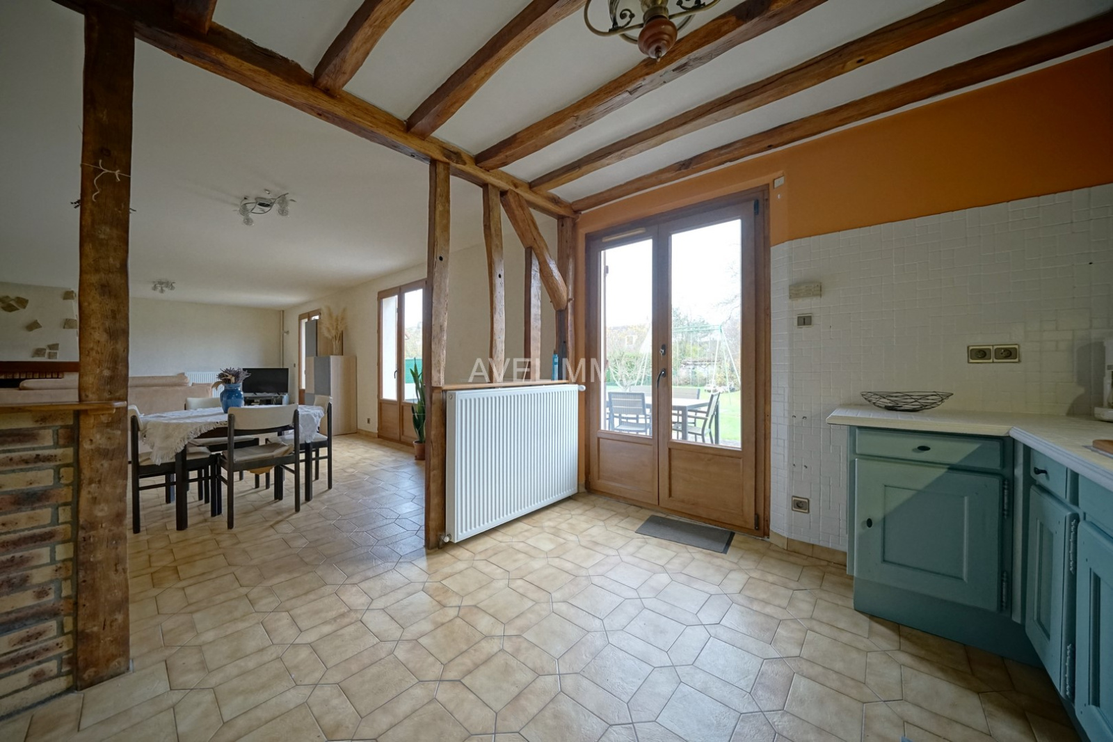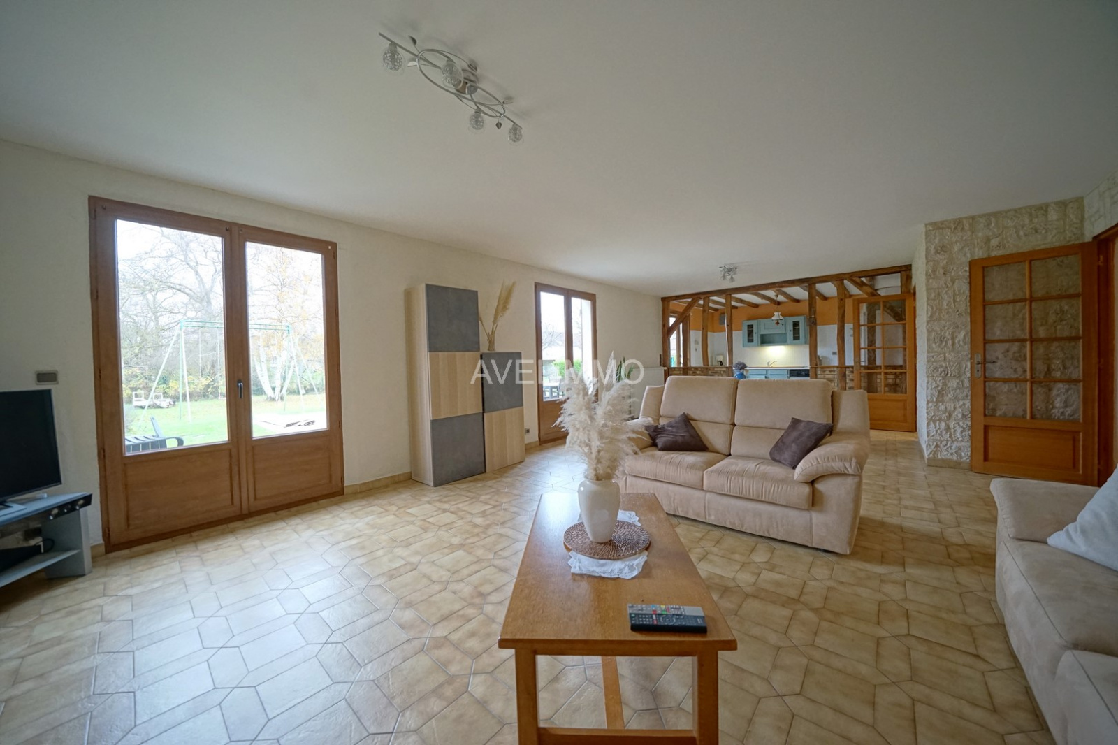 Sur la commune de Garancières, maison traditionnelle de 190 m² (171 m² habitables), comprenant au rez-de-chaussée une entrée, un grand séjour lumineux avec cheminée de 44 m², une cusine US de 12.50 m², une chambre de 16 m², une salle de bains/douches de 8.50 m², wc indépendant. A l'étage, un palier distribuant 3 chambres (14.50 / 28 et 36 m² au sol), et une salle de douches avec wc. Sous-sol total (garage 2 VL, buanderie et cave). Beaux volumes, double vitrage, chauffage central par pompe à chaleur, décoration à prévoir. Terrain de 1000 m² arboré, au calme. Situation idéale en centre village, avec petits commerces et école à pied.