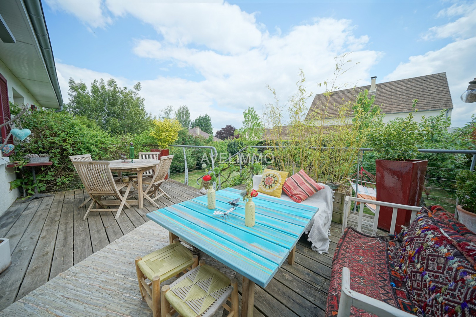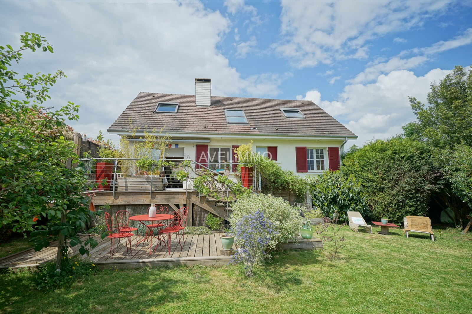 Au calme et au coeur du village, maison traditionnelle de 144 m² sur sous-sol total et 735 m² de terrain, offrant : Au rez-de-chaussée : Une entrée, un séjour avec cheminée insert et cuisine US équipée d’une surface totale de 34 m², deux chambres de 15.50 m² et 9.40 m², une salle de douches et un wc indépendant. A l’étage : Une pièce palière de 15.50 m² au sol distribuant trois chambres de 22 m², 14.20 m² et 12.70 m² au sol, une salle de bains avec wc de 5.40 m². Au sous-sol : Un garage, une buanderie, un atelier, un cellier / cave et une pièce de stockage avec chaufferie. Elle dispose également de trois terrasses en bois (devant et derrière) dont une avec espace rangement dessous. Le terrain est clos, arboré et sans vis-à-vis. Maison lumineuse, en parfait état et idéalement située avec écoles, gare et commerces à pied.