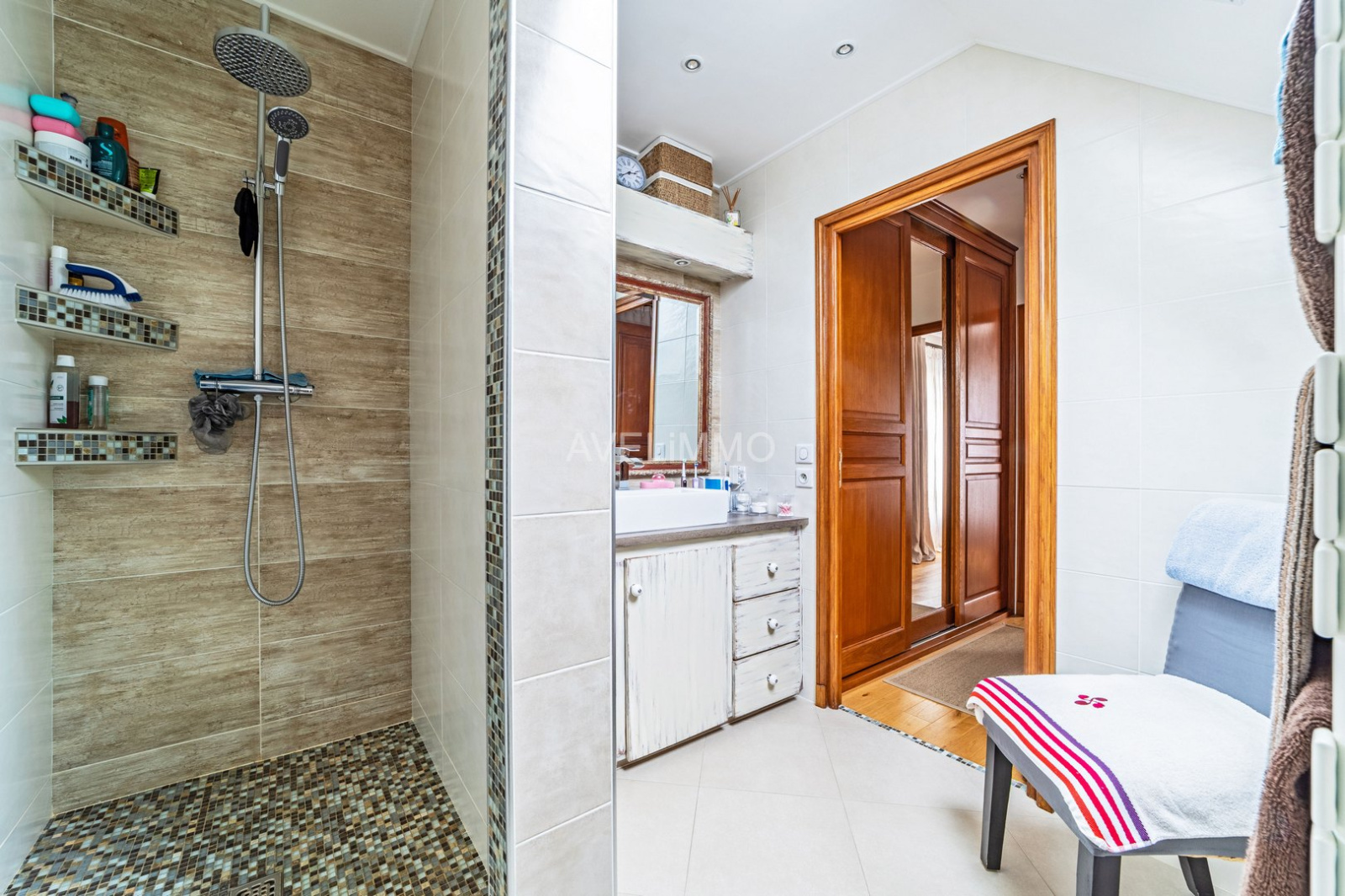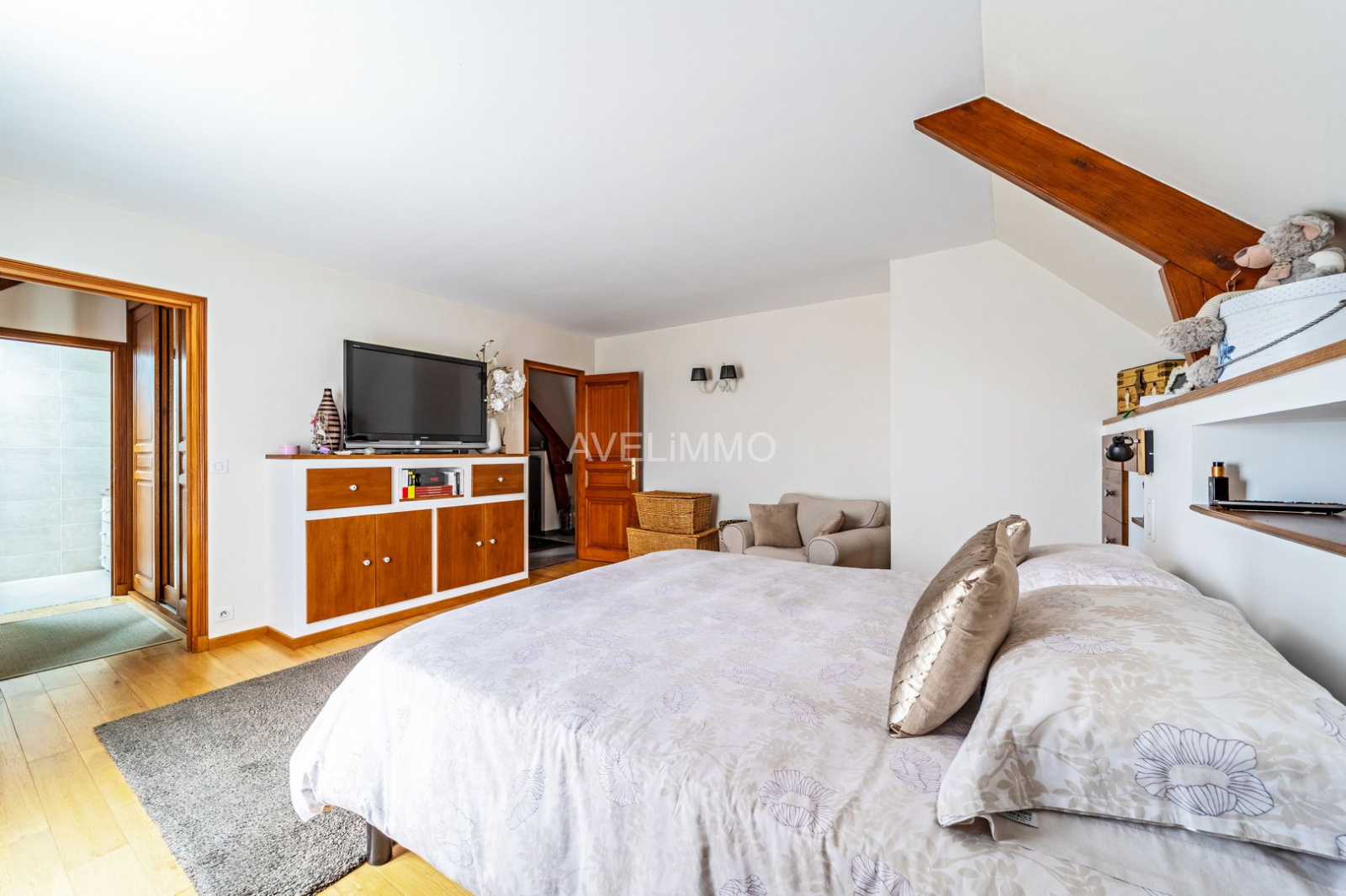 - À l’étage : un palier desservant deux chambres, une salle de bains, ainsi qu’une suite parentale avec dressing et salle de douche privative, et un WC indépendant.