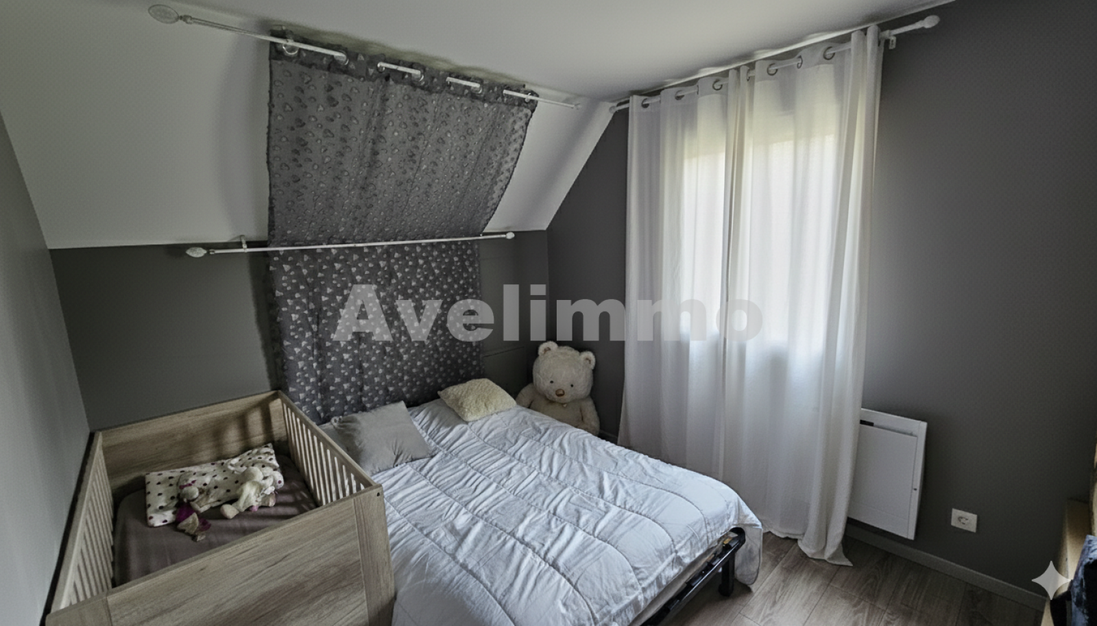 À l’étage, un salon d’étage dessert deux belles chambres de 12?m² et 13?m², ainsi qu’une salle de bains avec WC, offrant tout le confort nécessaire à la vie de famille.