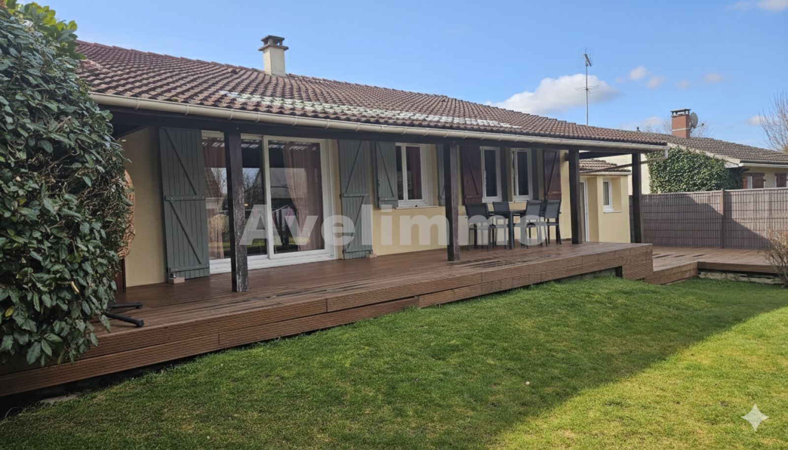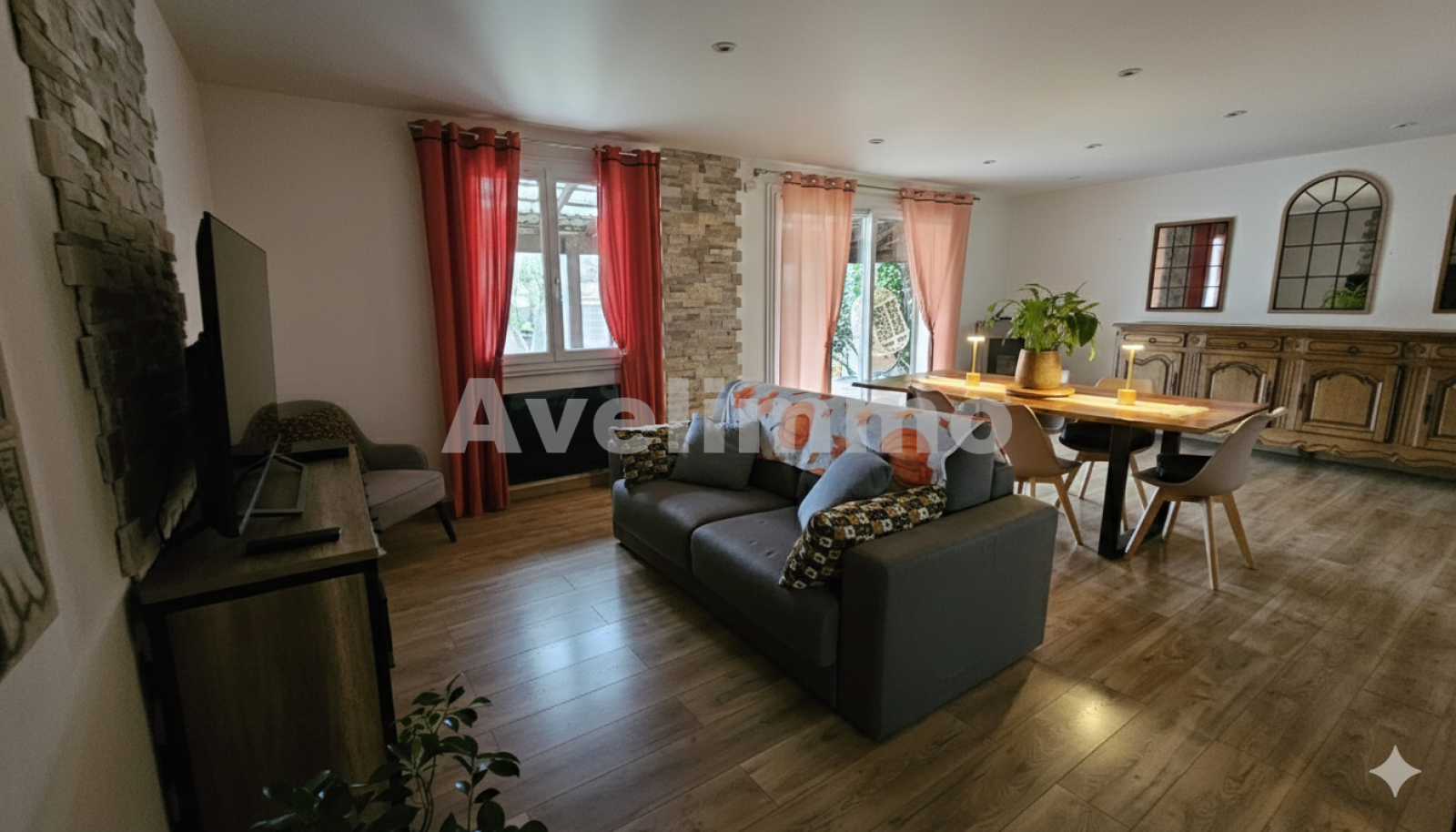 Découvrez cette superbe maison de plain-pied de 110?m², entièrement rénovée avec des prestations de qualité. Dès l’entrée, vous serez séduit par un vaste salon lumineux, idéal pour vos moments de détente en famille ou entre amis. La cuisine moderne et entièrement équipée vous permettra de préparer de délicieux repas dans un espace fonctionnel et convivial.