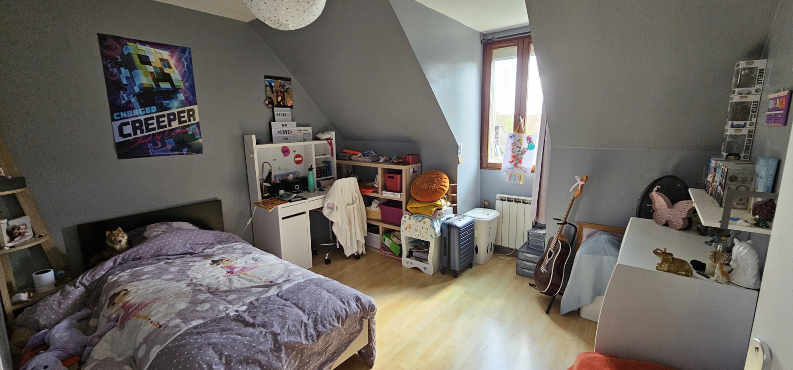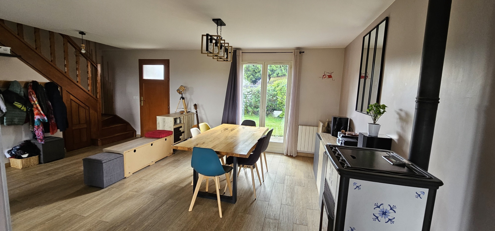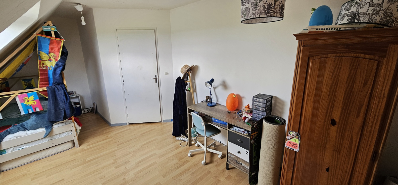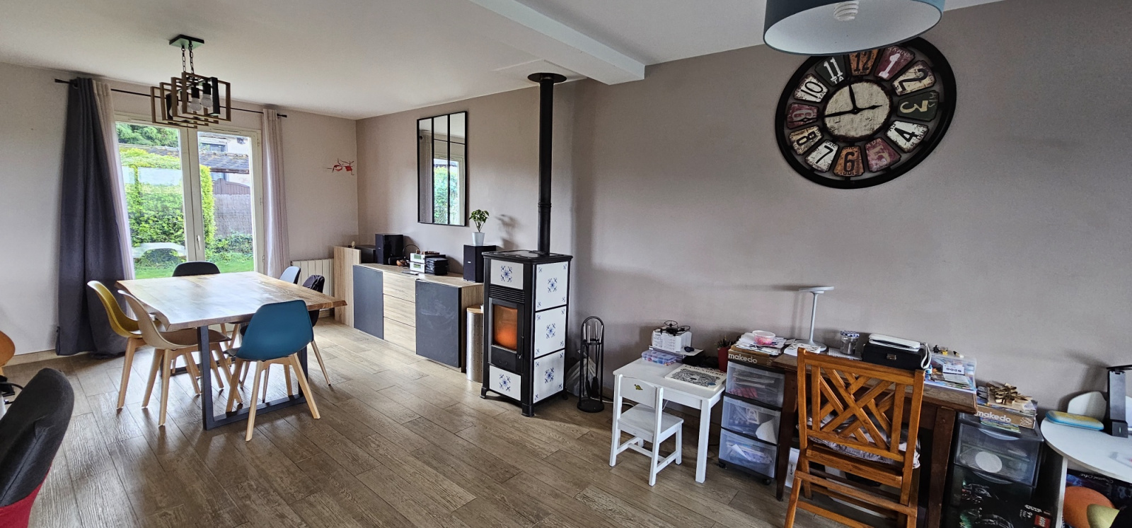 **Profitez du calme de la campagne dans cette charmante maison de 155 m², offrant une vue imprenable sur les environs et un cadre de vie paisible.** Au rez-de-chaussée, découvrez une spacieuse pièce à vivre de 63 m² avec une cuisine ouverte et équipée, une chambre avec placard, un bureau avec accès direct au garage, une salle de bains et un WC. À l'étage, quatre chambres vous attendent, dont une grande suite parentale et une chambre avec coin dressing, ainsi qu'une salle d'eau, un WC, et une mezzanine qui relie l'ensemble. En annexe, un grand garage double, un carport, un cabanon de jardin, et un jardin clos de 717 m² complètent ce bel ensemble, offrant un cadre de vie idyllique.