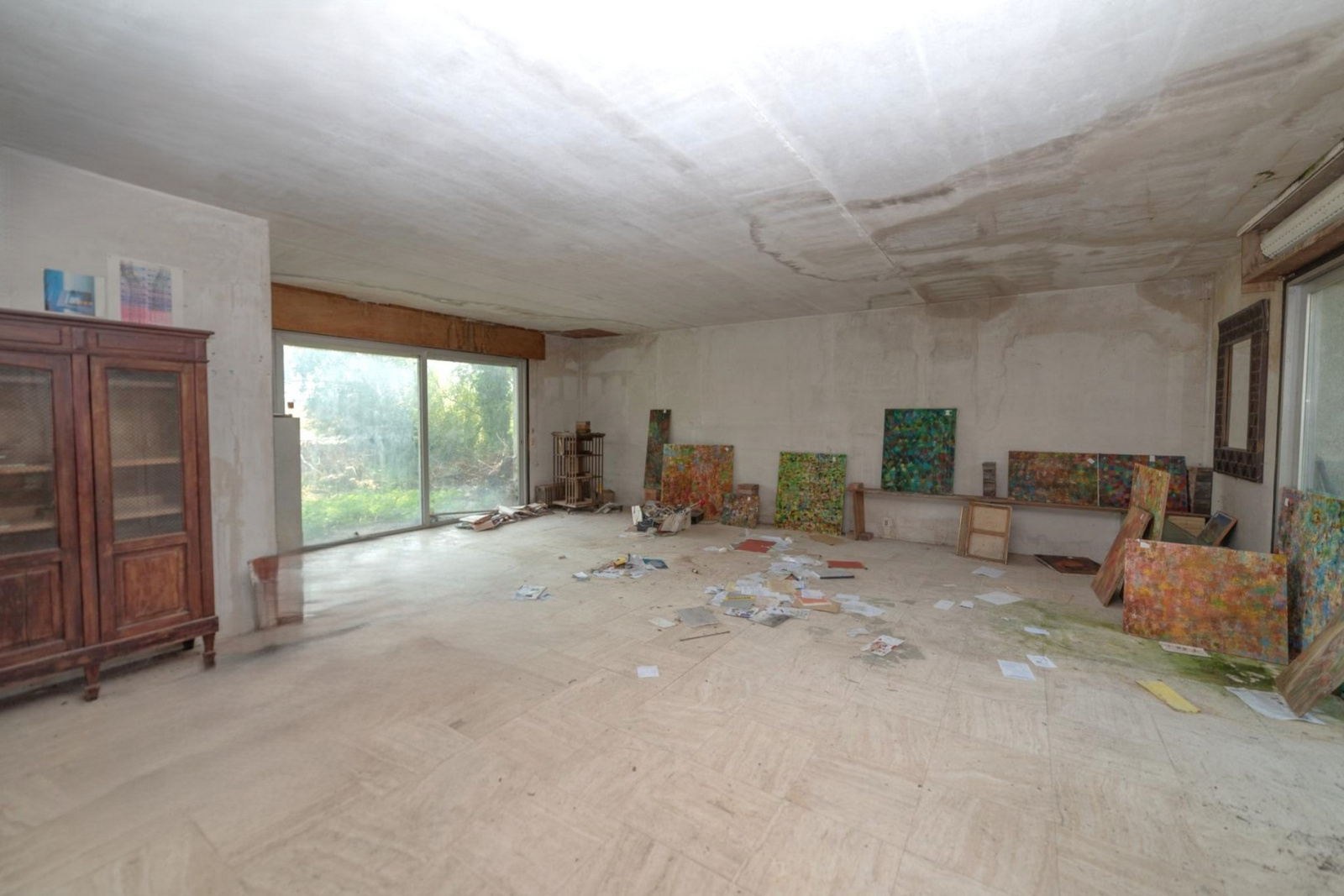 Grande maison d'architecte à rénover entièrement d'environ 206 m² habitables sur sous-sol total de 140 m² et terrain de 2500 m², composée au rez-de-chaussée : d'une entrée sur séjour cathédrale de 58 m² avec cheminée, d'un salon / salle à manger de 58 m², d'une cuisine de 26 m² et d'une salle d'eau avec wc. A l'étage : un dégagement dessservant une chambre de 26 m² avec salle de bains et wc de 7.50 m² et une 2e chambre de 23 m² avec salle de douches et wc. Grenier en sous-pente.