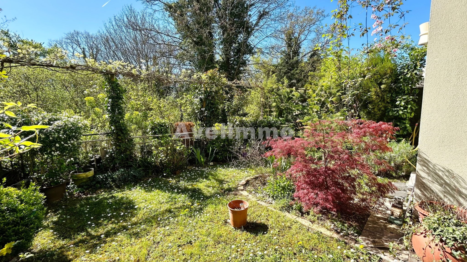 La maison dispose également d'un petit jardin privatif. Un grand garage d'environ 25 m² comprenant un espace de rangement et une buanderie avec point d'eau, offre un accès direct au jardin.
