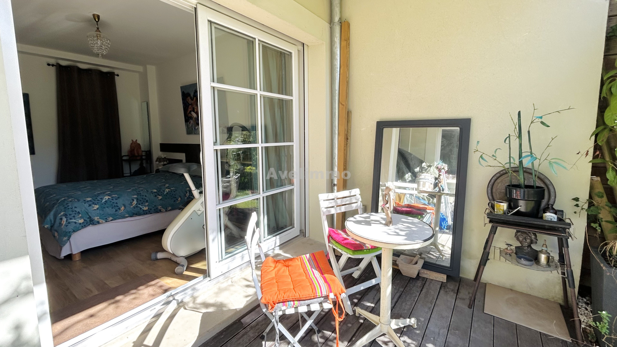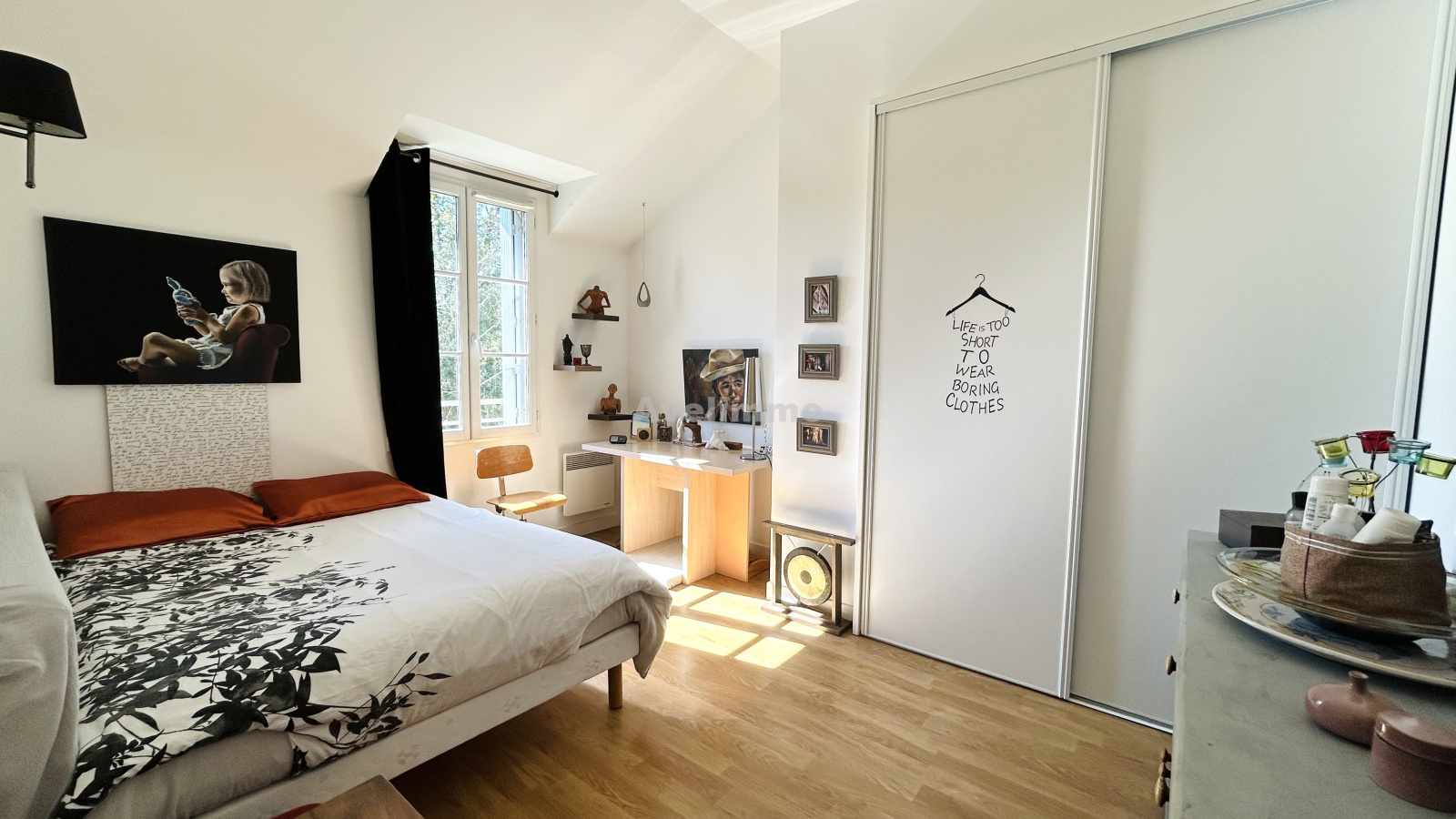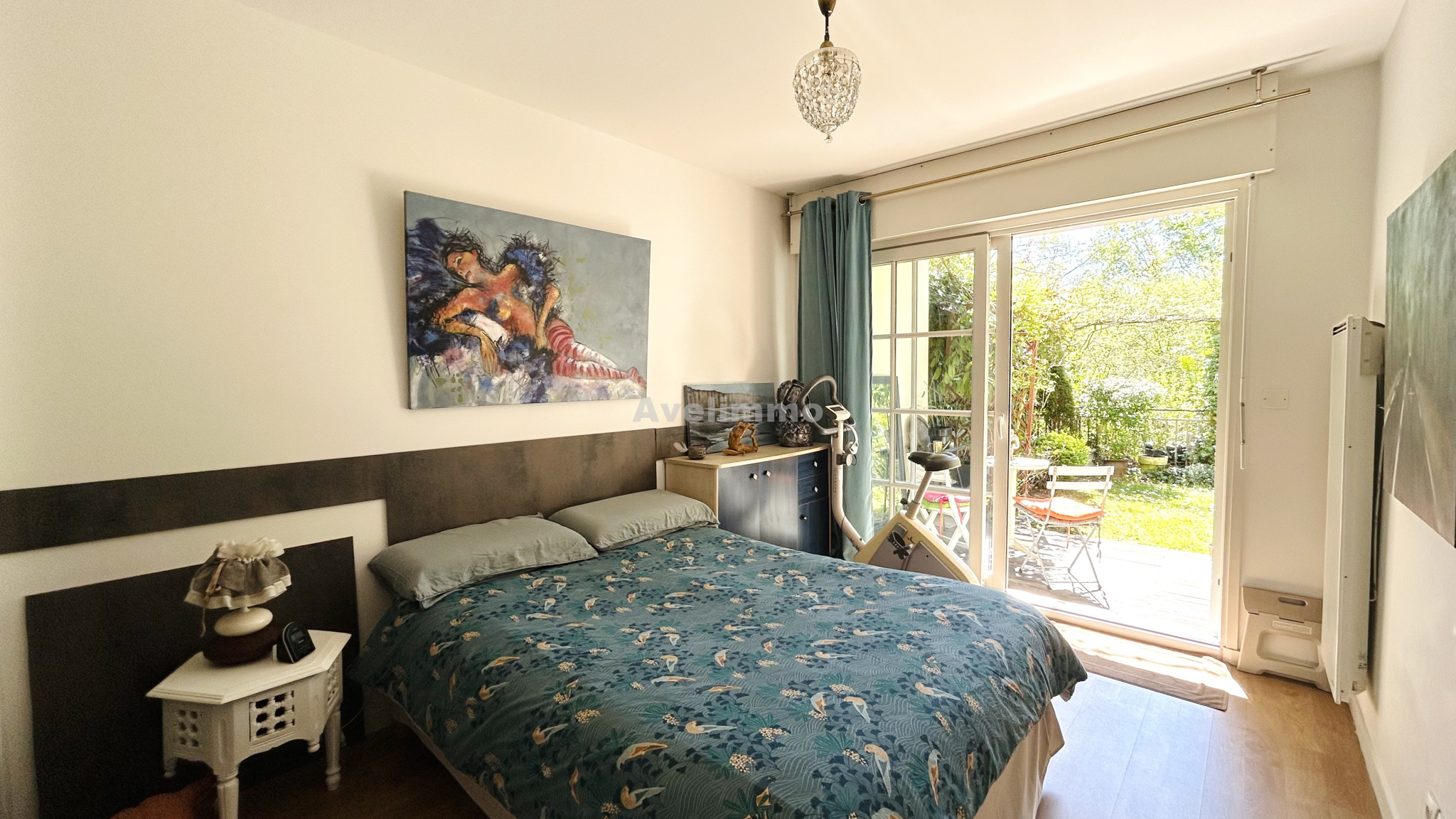 Dès l'entrée, un large couloir dessert une belle chambre avec dressing privatif, bénéficiant d'un accès direct à la terrasse et au jardin. Une salle de douche moderne avec toilettes.