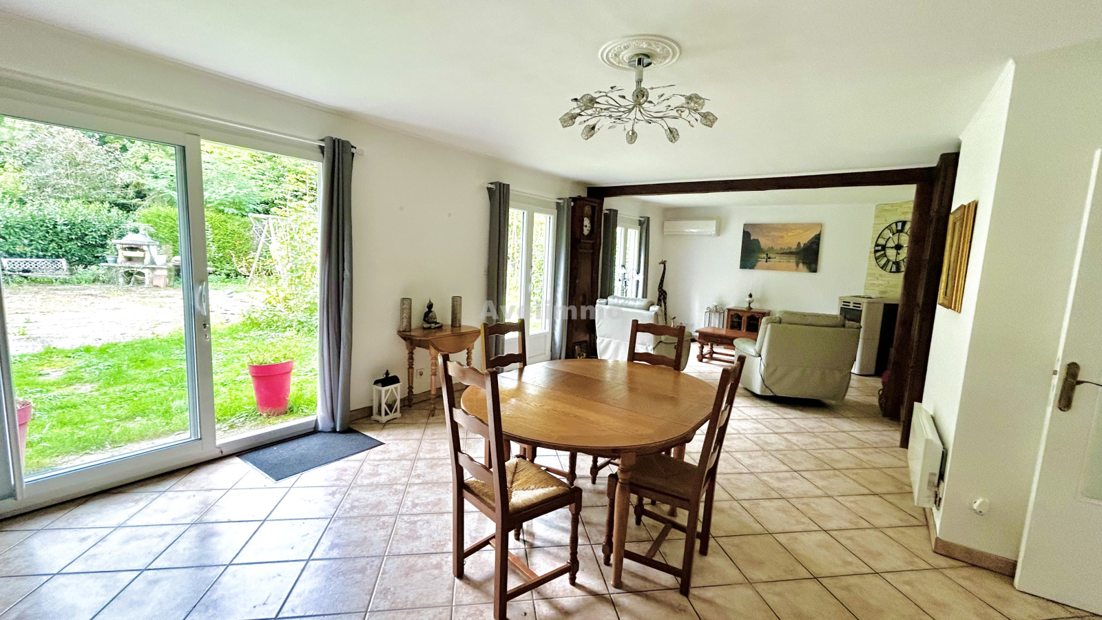 À l’extérieur, vous profiterez d’un vaste jardin de 1 547 m² et d’une terrasse.